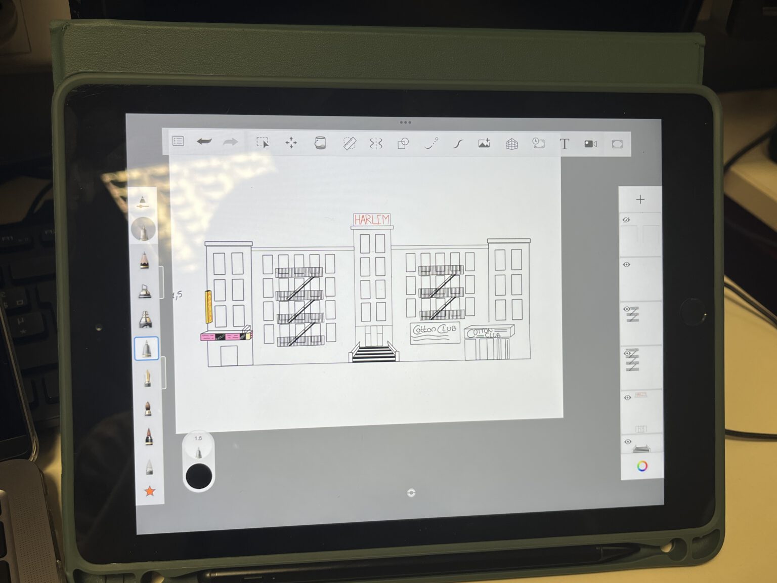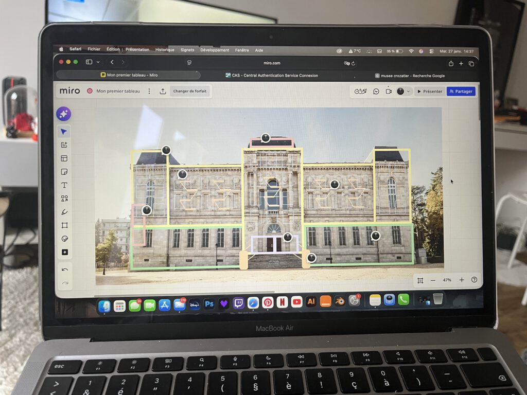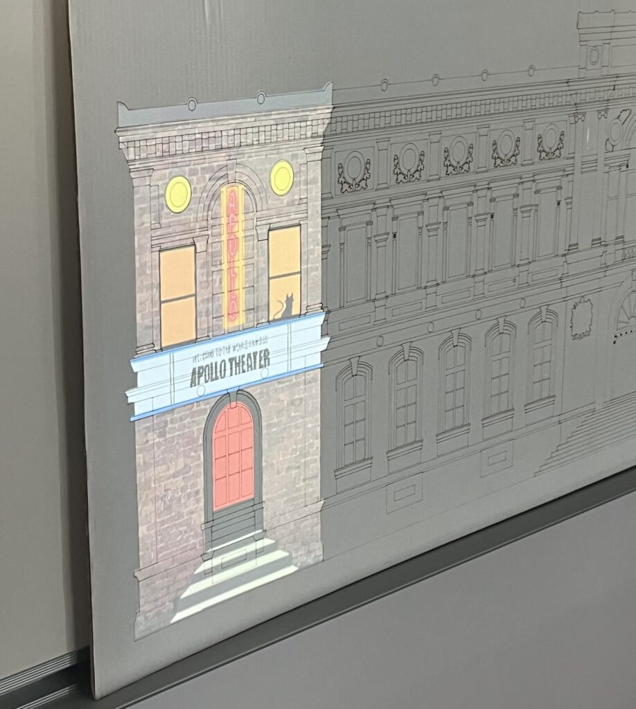 L'objectif était de projeter l'effervescence culturelle de Harlem sur l'architecture classique du Musée Crozatier. Mon travail a débuté par une phase d'idéation et de croquis pour adapter l'esthétique urbaine aux lignes du bâtiment. J'ai ensuite validé ces concepts par des tests sur maquette, essentiels pour ajuster les perspectives et le relief avant la production finale.